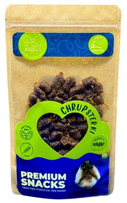 Baffidi ChrupSterki Dzik - to wyjątkowa, naturalna przekąska dla psów, które kochają intensywny smak i aromat. Małe, miękkie kosteczki doskonale sprawdzają się podczas treningu, spacerów i codziennego nagradzania. To zdrowa i lekkostrawna forma smakołyku, która dostarcza psu cennych składników odżywczych i wspiera jego kondycję na każdym etapie życia.