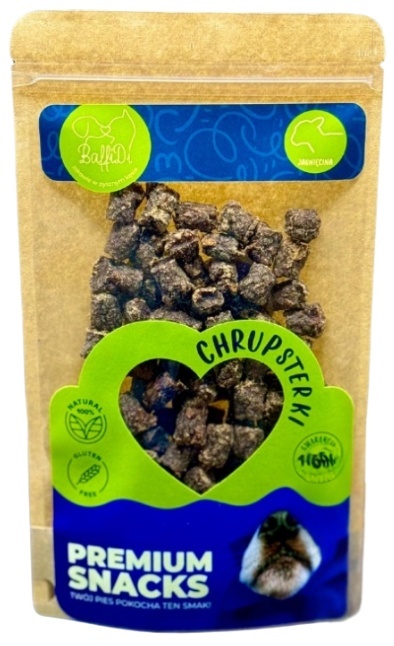 Baffidi ChrupSterki Jagnięcina - to wyjątkowe przysmaki treningowe, które sprawią, że każdy spacer i sesja szkoleniowa będą dla psa jeszcze większą przyjemnością. Małe, miękkie kosteczki są lekkostrawne, delikatne dla żołądka i bogate w wartościowe składniki odżywcze. Dzięki swojemu aromatowi i wysokiej smakowitości sprawdzają się nawet u najbardziej wybrednych psów.
