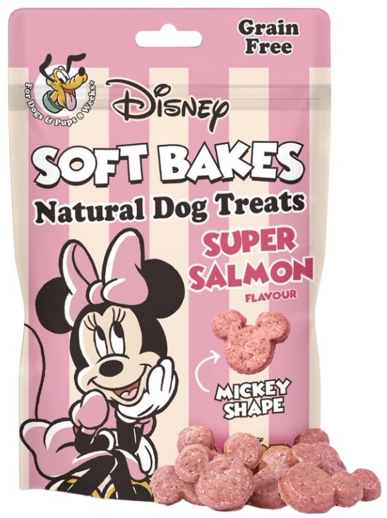 Park Life Disney Soft Bakes Ciasteczka o smaku łososia - to wyjątkowe, bezzbożowe ciasteczka dla psów w kształcie kultowych postaci Myszki Mickey i Minnie. Powstały z naturalnych składników i zawierają aż 4% prawdziwego łososia, który dostarcza cennego białka i kwasów tłuszczowych omega-3. Pieczone w małych partiach, zachowują świeżość i idealną chrupkość. Bez dodatku cukru, soli, sztucznych barwników i konserwantów, dzięki czemu są zdrową przekąską odpowiednią również dla szczeniąt.