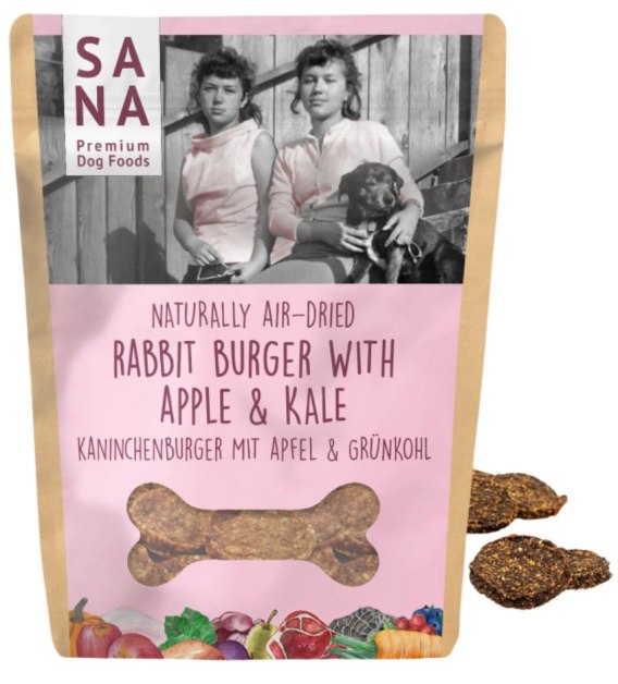 Sanadog Burgery z królika z jabłkiem i jarmużem - to przysmak dla Twojego psa, sporządzony z czystej, wysokiej jakości mięsa z królika i zdrowych superfoods. Produkowane są w naszej własnej fabryce bez dodatków takich jak kukurydza, pszenica, soja, barwniki, konserwanty, mąka mięsna czy inne wypełniacze i są delikatnie suszone na powietrzu. Nasza technologia suszenia powietrzem to nowoczesna interpretacja wielowiekowych technik konserwacji mięsa.