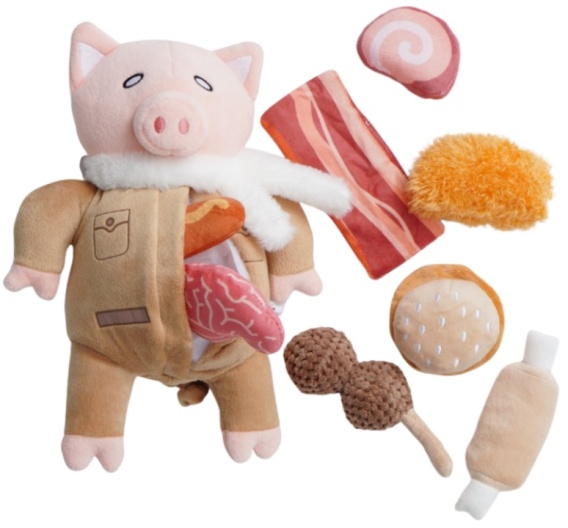 W jej brzuszku ukrywa się aż osiem mniejszych zabawek o różnych kształtach, fakturach i dźwiękach. Każda z nich wyposażona jest w piszczałkę lub szeleszczący papier, co pobudza zmysły psa i zachęca go do eksplorowania. Brzuszek świnki zamykany jest na mocny rzep, dzięki czemu możesz ukryć w środku mini zabawki albo… ulubione smaczki Twojego pupila!